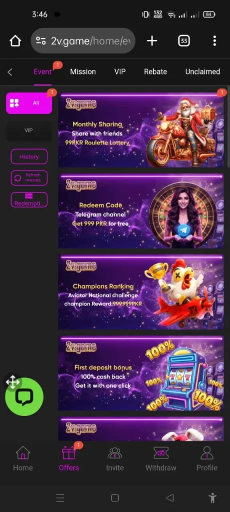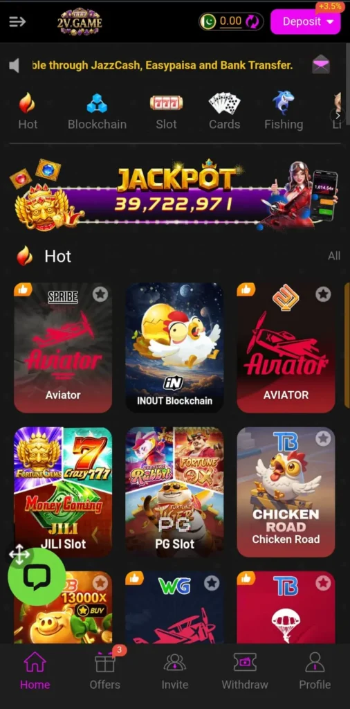 2V Game is an online earning casino platform. It offers slots, lottery, sports betting, fishing games, and card games in one app. Players in Pakistan can join using their mobile phones.