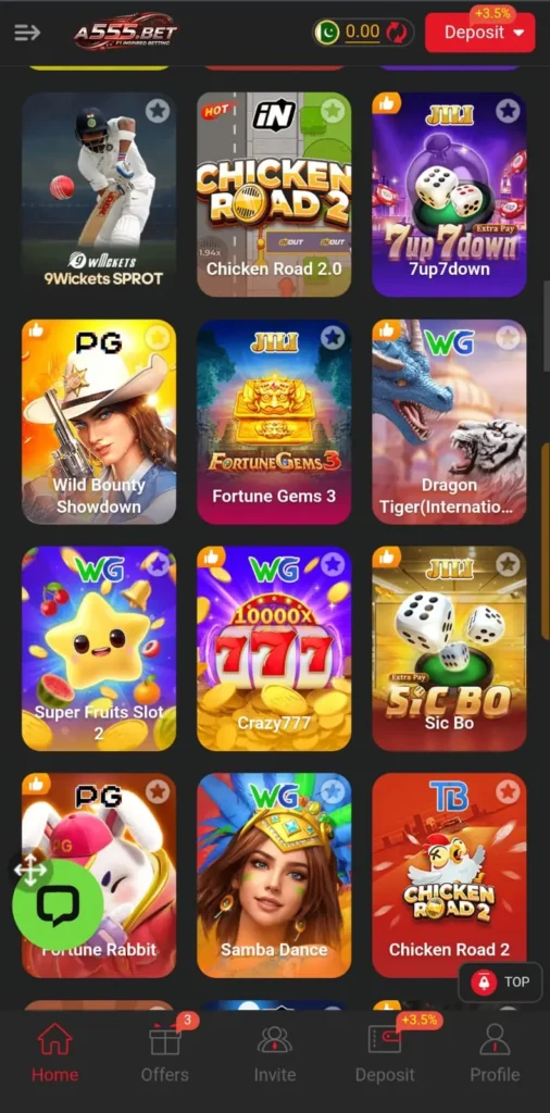 With regular improvements, A555 can become one of the top-earning casino apps in Pakistan.