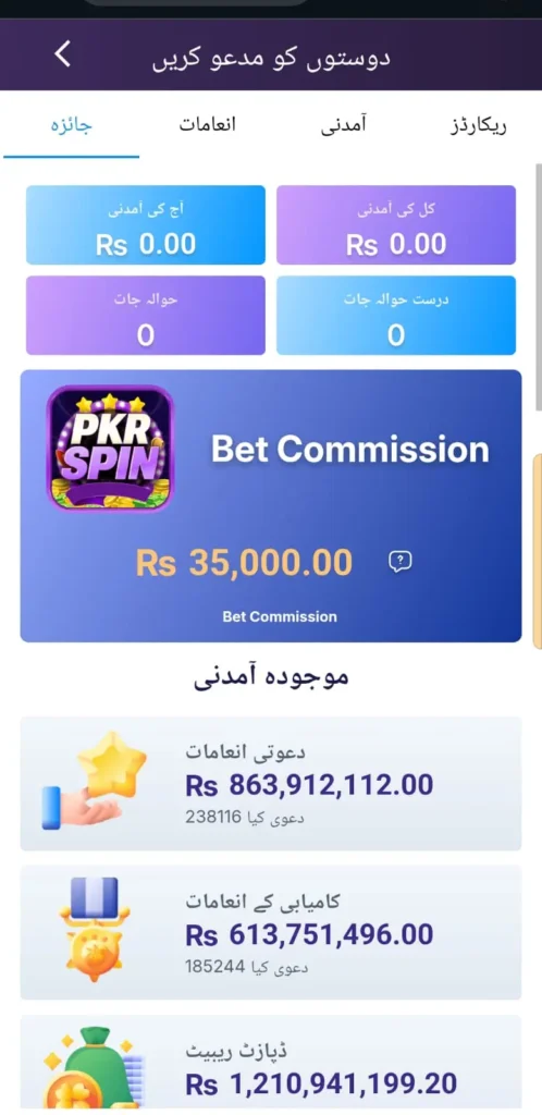 PKR Spin is a multi-category casino and sports betting application developed for adult players in Pakistan. It allows users to enjoy slot games, card-based entertainment, lottery systems, and live sports betting from their smartphones. Also try R777 Game.