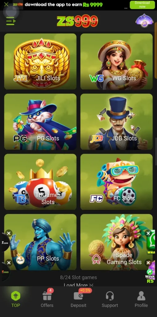The ZS999 Game is a modern online earning casino app designed for Pakistani users. It offers slots, lottery, sports betting, fishing games, and card games in one platform. With Easypaisa and JazzCash withdrawals, it provides fast and reliable payments.